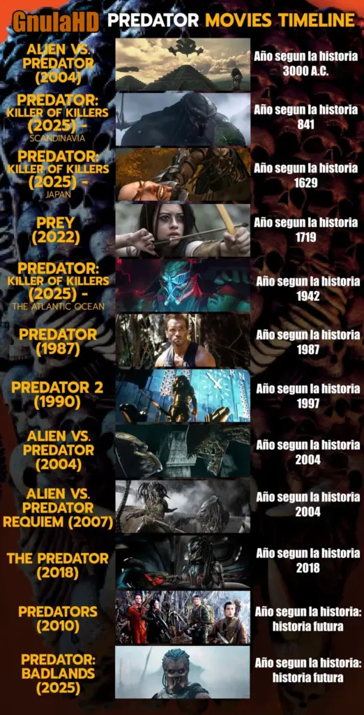 Importante: Alien vs. Predator no forma parte del canon oficial de Predator. En la línea temporal original de Predator, estos eventos no tienen peso en la historia central, lo que convierte a esta película en una historia alternativa que no se integra con la cronología principal.